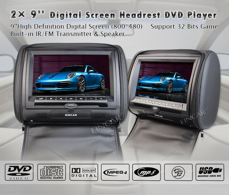 2x 9 Inch Car Headrest Dvd Players With 1080p Fm Ir Transmitter