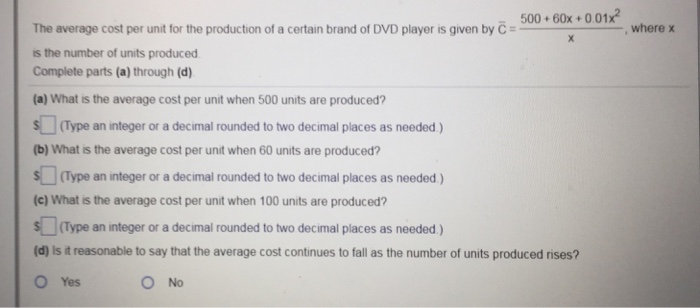 Solved The Average Cost Per Unit For The Production Of A
