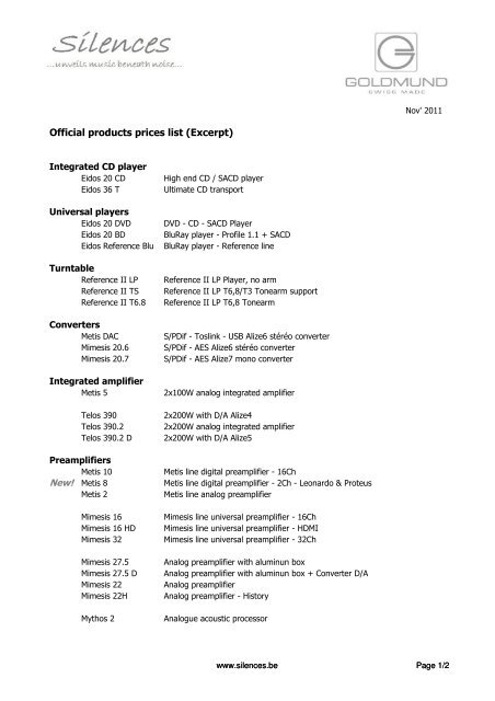 Official Products Prices List Excerpt Silences