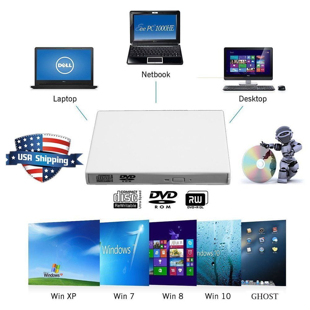 External Dvd Drive Usb Cd Player Rw Burner Laptop Pc Optical Drive
