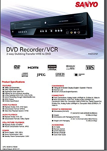 Sanyo Combination Vcr And Dvd Recorder With 1080p Hd Upconversion