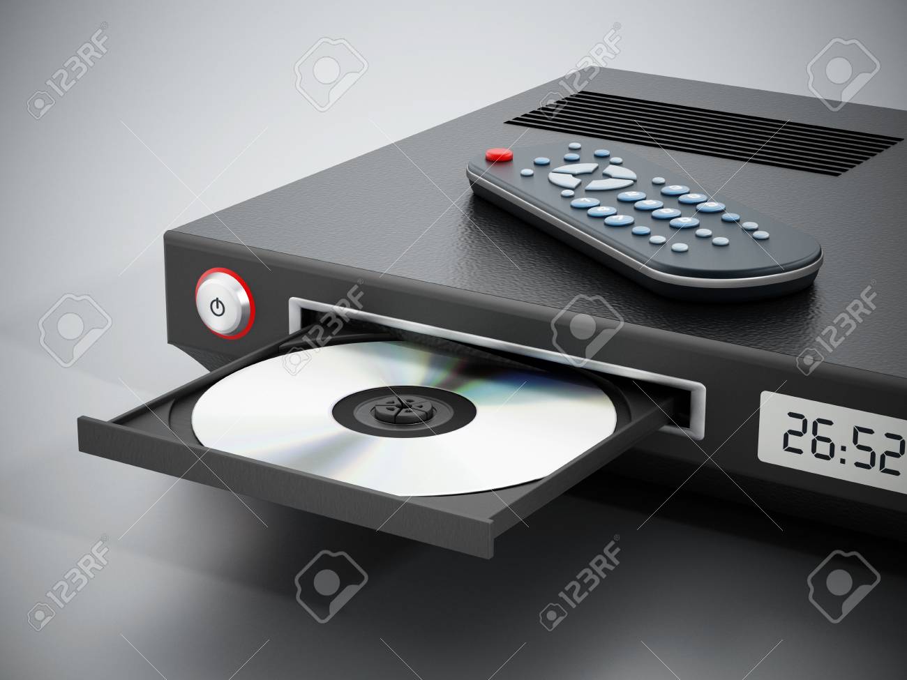 Blu Ray Player With Open Disc Tray And Remote Controller Stock