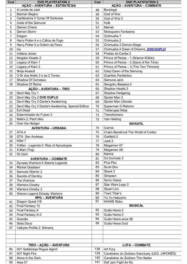 Lista Jogos Ps2