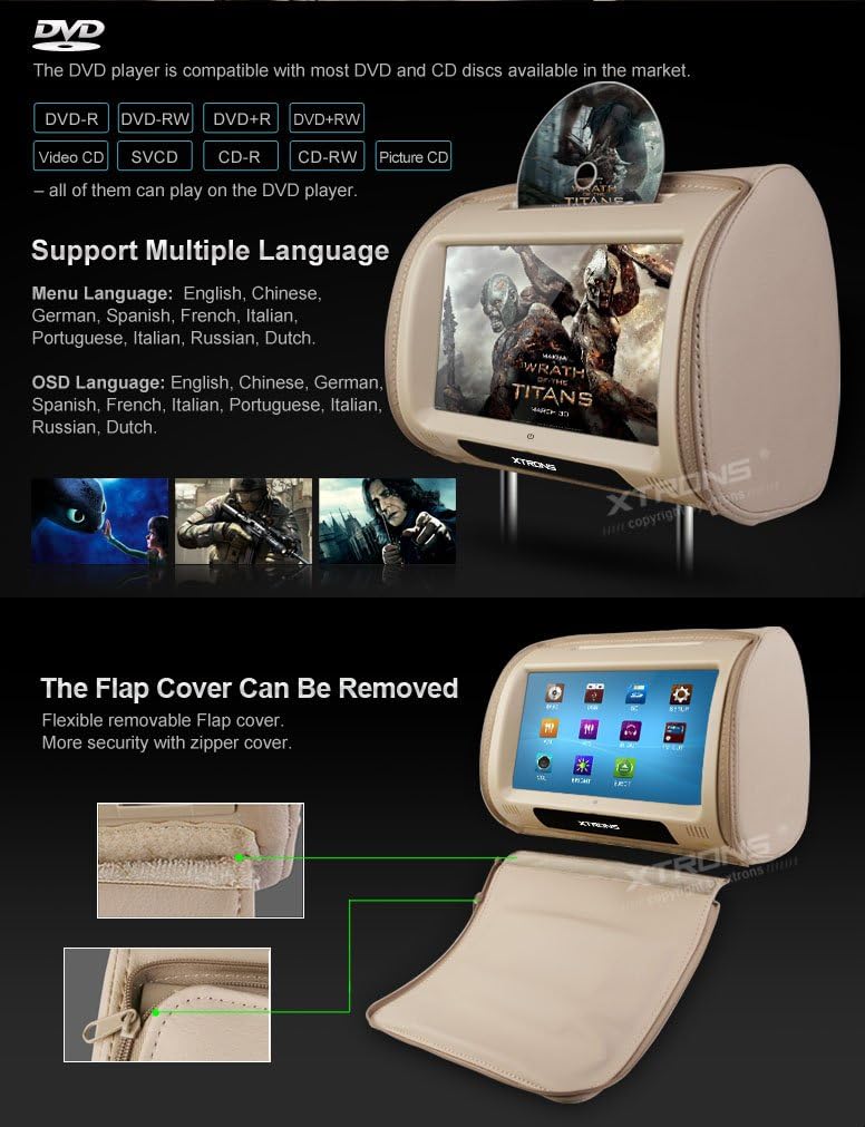 Amazon Com Xtrons Beige 2 X 9 Twin Car Headrest Dvd Player Pillow