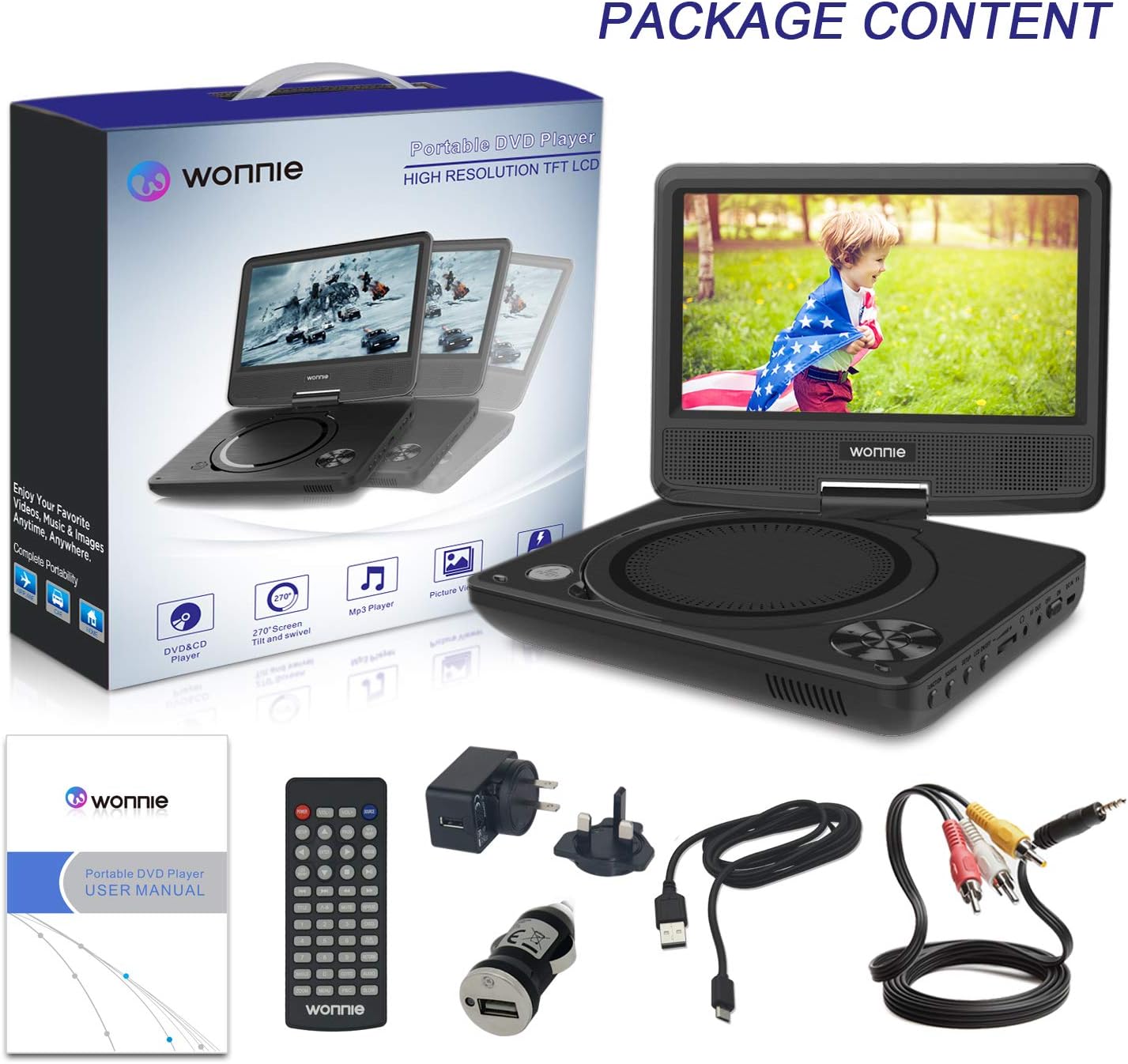 Amazon Com Wonnie 9 Inch Portable Dvd Player For Kids Travel Dvd
